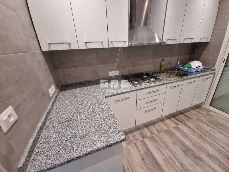 Le duplex comporte au rez de chaussé un salon - salle à manger, une cuisine moderne équipée, une salle de douche et deux terrasses.