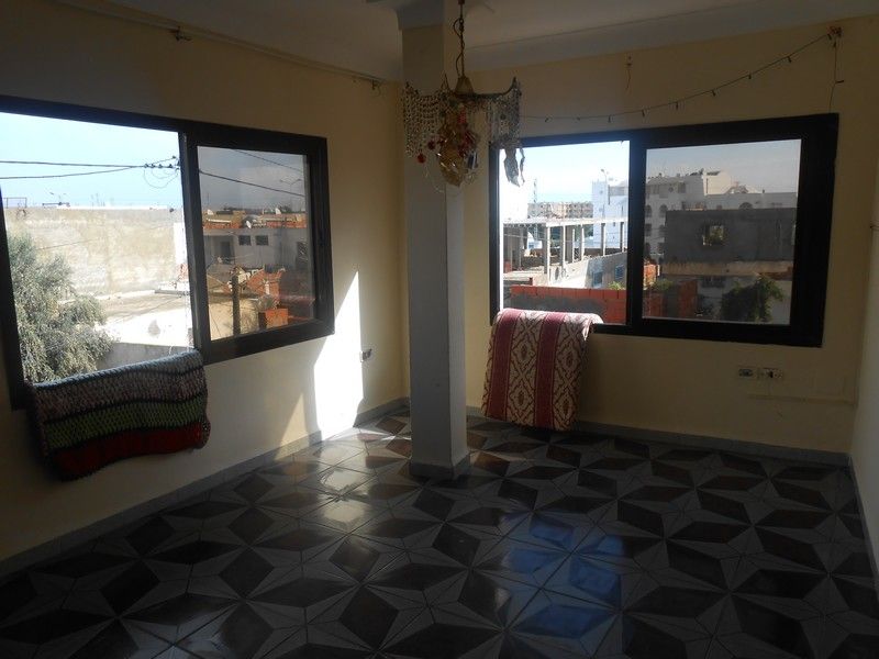 Av en face Yasmin Hammamet à 30m de la route GP1 et a 400m de la mer, beau duplex construire sur un terrain de 80m² dont 30m terrasse et 100m couvert, composée au rez-de-chaussée d’un salon, cuisine et salle d’eau.