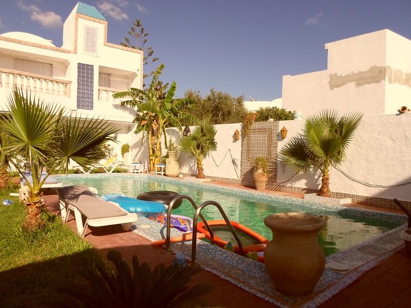 AV une belle villa sur deux niveaux avec piscine. La villa se trouve dans une zone résidentielle pas loin de l’hôtel Miramar. La villa surgit sur un terrain de 300 m² dont 180 m² couverts. La piscine fait 12 mètres sur 6. Au rez-de-chaussée, un salon-kitchenette, un coin repas, une salle d’eau et une terrasse arrière avec un puits. A l’étage deux chambres suites, une avec douche italienne et l’autre avec jacuzzi.