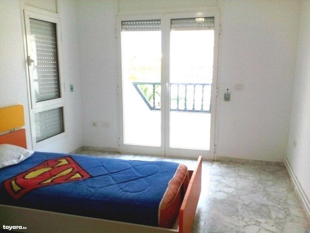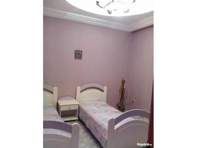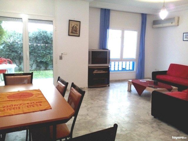 Ce duplex est situé dans une résidence gardée et calme au cœur de la zone touristique Hammamet Nord . L'entrée principale donne sur un salon meublé revêtue de marbre blanc, il bénéficie d'un accès sur un espace gazonné de 60 m², une cuisine légèrement équipée et aménagée ainsi qu'une salle de douche sont disponibles au rez-de-chaussée. Les escaliers marbrés mènent à l’étage qui loge les trois chambres à coucher dont une avec balcon.