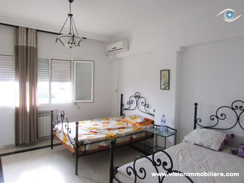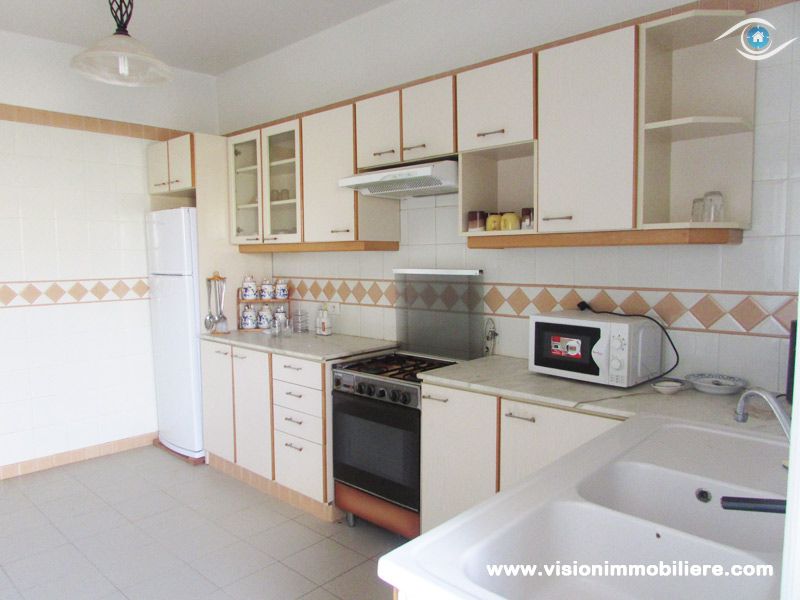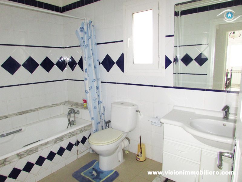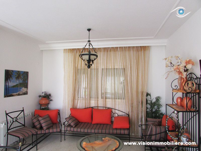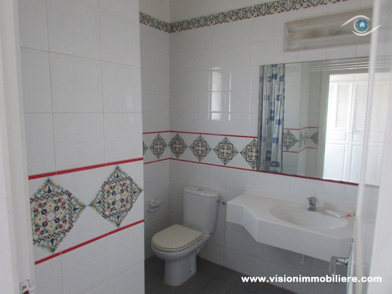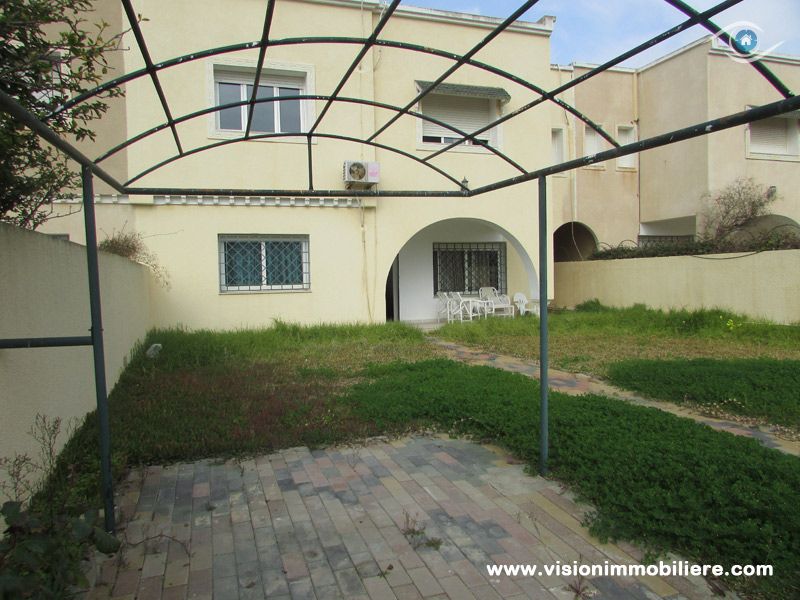 A vendre , Ce duplex se situe dans un quartier gardée et proche des commodités à Hammamet sud. Bénéficie d'un jardin gazonné avec piscine qui offre plusieurs espaces de détente. La partie jour du duplex est composée principalement d'un salon, d'une salle à manger donne sur la piscine. La cuisine dispose de plusieurs éléments de rangement nécessaire (plaque de cuisson, d'une hotte aspirante et d'un four encastré). Quelques marches nous mènent au compartiment nuit dans lequel prennent place deux chambres à coucher se partagent une salle de bains commune et une suite parentale bénéficient chacune d'un dressing pour plus de rangements. Un abri qui peut contenir deux voitures.
