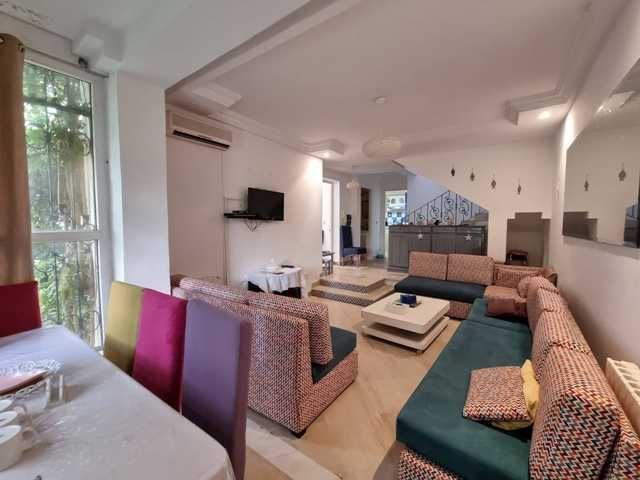 A louer pour des courtes durées chez l'agence TPS Immobilière Hammamet, un joli duplex érigé sur deux niveaux, bien situé à Hammamet nord à quelques mètres de la mer dans une résidence calme et sécurisée.