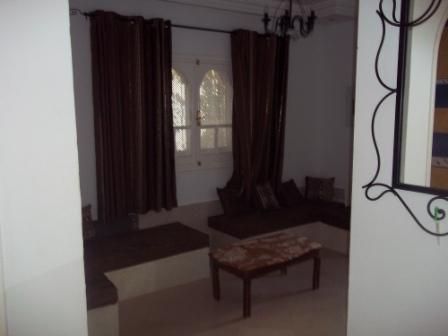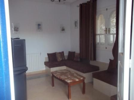 Location d’un duplexe meublé dans une résidence gardée et sécurisée, située à Hammamet Nord. Il se compose de : rez de chaussée : salon, cuisine équipée, salle d’eau, terrasse. 1ère étage : 2 chambres à coucher, salle de bain et terrasse. Il est équipé de télévision avec satellite, interphone, climatiseur, chauffage centrale, jardin et garage. Superficie : 103 m² Prix à l’année : 900 DT par mois.
