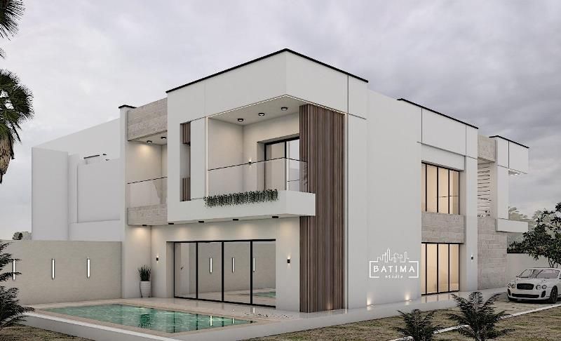 La superficie de la villa B: 350 m² terrain et 305 m² bâtie dont le prix est à 1400.000 DT.