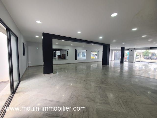 Il est répartie en un open space et dispose d’une vitrine qui donne sur la route, un bureau, une terrasse et un wc.