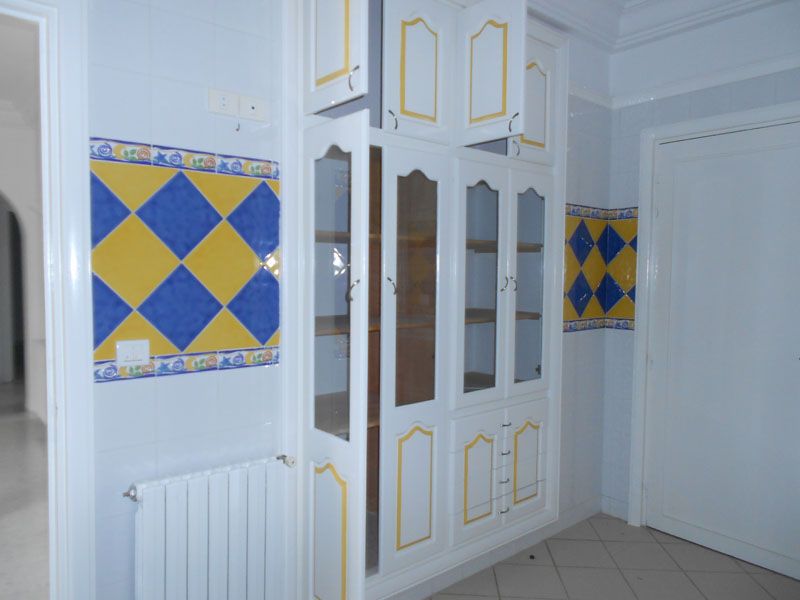 Appt au 1èr étage composé d’un salon, 03 ch à coucher, sdb, et cuisine, il est équipé d’un chauffage central. Situé dans un quartier calme pas lion de la mer et de centre ville. Location à l’année : 600dt