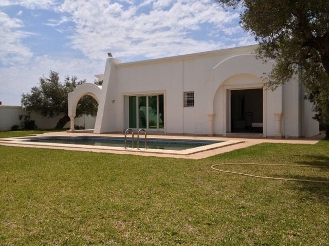 A louer à l'année chez l'agence Tps immobiliere, une charmante villa avec jardin gazonnée et une piscine située à Hammamet Nord .