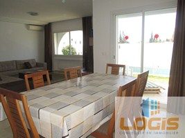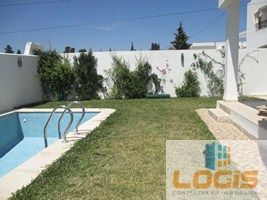 une villa neuve de haut standing située dans un zone calme,cette oropriété offre 5 chambres , une sallon et une salle à manger,une grande piscine