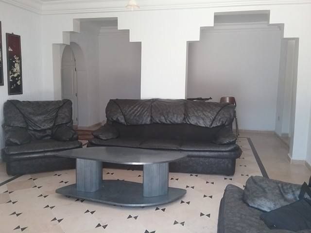 l’intérieur dispose d'un salon assez ample,une terrasse,un séjour,salle d'eau,une chambre a coucher et un suite parentale