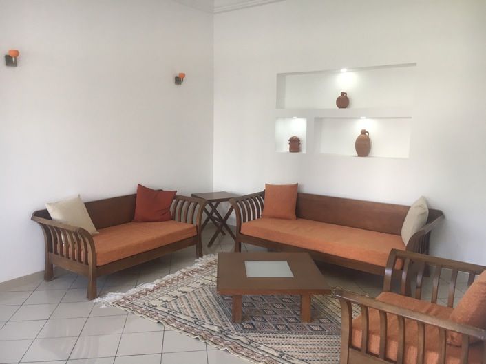 A louer à l’année une coquette maison de plein pied située à Hammamet – vers Hammamet Sud dans un quartier résidentiel proche d‘Hôtel Phenicia.