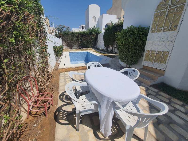 A louer pour les vacances chez l'agence TPS Immobilière Hammamet, une maison meublée avec piscine, située à la zone Miramar à 200m de la plage et à 15 minutes à pieds du centre culturel d’Hammamet et à proximité des hôtels Miramar et Fourati.