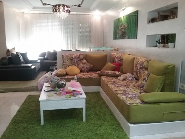 cet appartement est bien meublé et décoré,équipé de climatisation et loge trois chambres a coucher,double salon donnant sur une terrasse ,une salle a manger,une cuisine moderne et bien équipée et une salle de bain avec jacuzzi