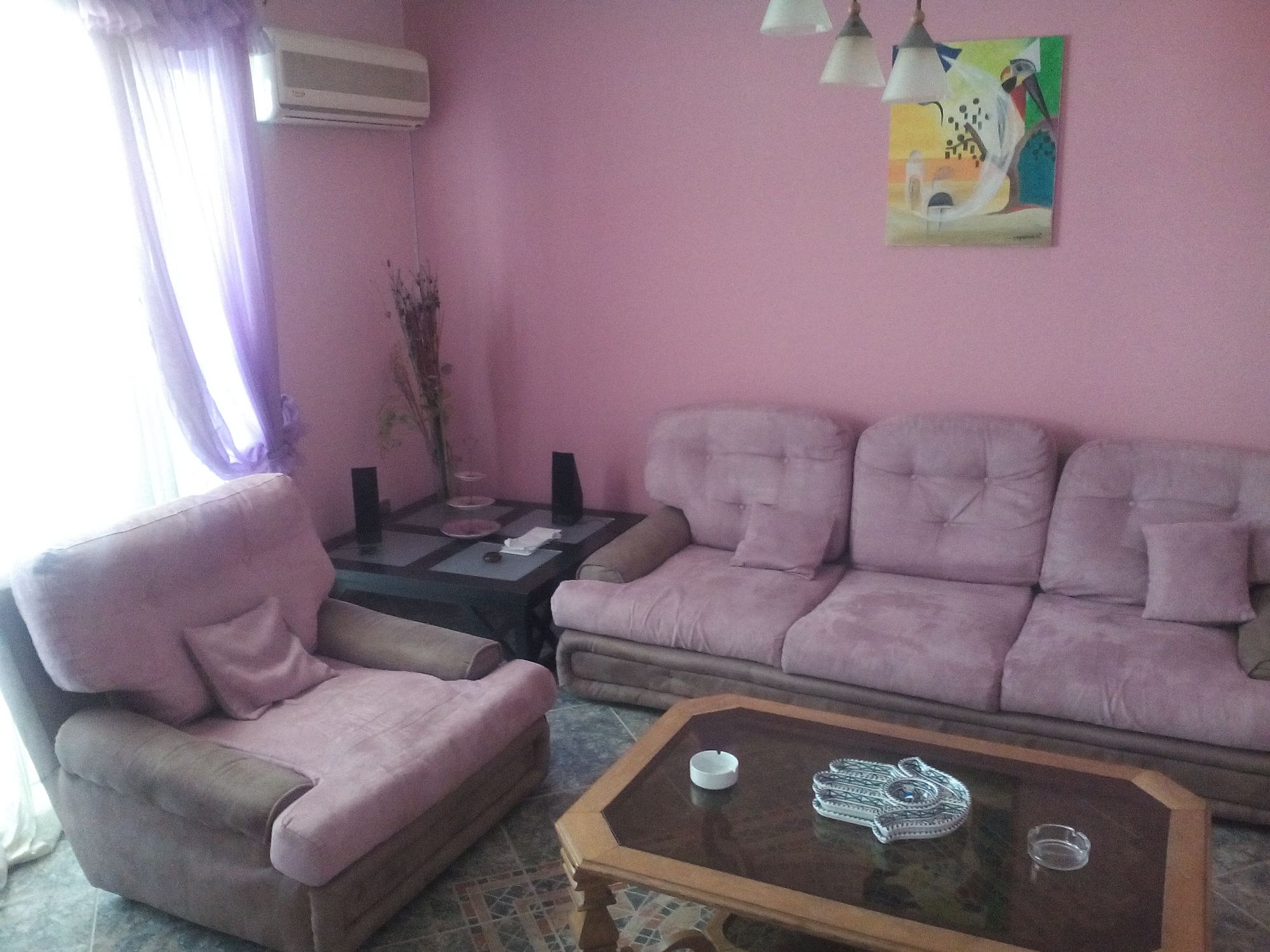 elle se compose par deux chambres et salon ,une cuisine bien équipée et salle de bain (avec jacuzzi) ;chauffage central,climatiseur et située dans une zone calme.