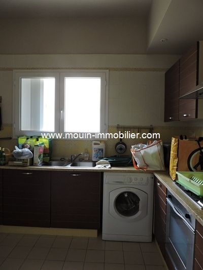 A louer à l'année un spacieux appartement richement meublé situé à l'étage d'une résidence gardée à Hammamet Sud. IL se compose d'un grand salon-salle à manger ouvrant sur une agréable terrasse, une cuisine équipée, deux chambres à coucher, une salle de bain et une salle d'eau.