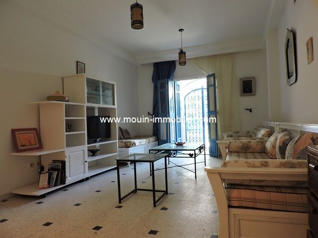 A louer à l’année un appartement de type S+2 meuble situé dans une résidence gardée à 5 minutes de la plage et de L’Hôtel Sindbad. Il se compose d’un salon-salle à manger donnant sur une terrasse et et un petit jardin, deux chambres à coucher et une salle de bain.