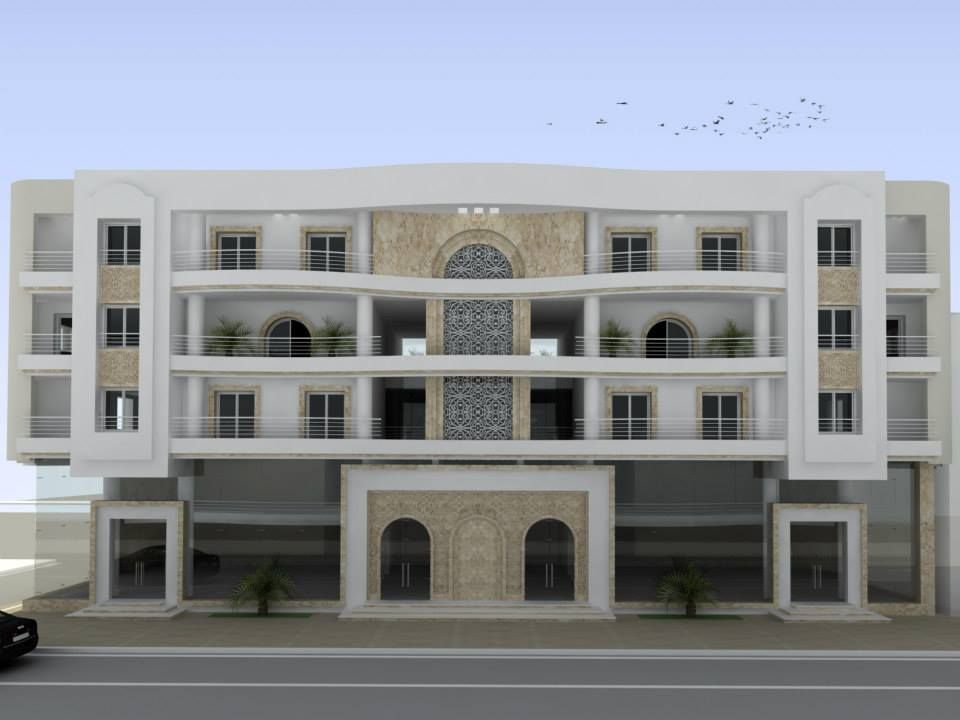 1er étage : Un appartement S+2 de superficie 134,48 m² avec à 305 000 DT, un appartement S+3 de superficie 194,75 m² à 445 000 DT, un appartement S+2 de superficie 140,72 à 320 00DT et un appartement S+3 de superficie 188,28 m² à 430 000DT.