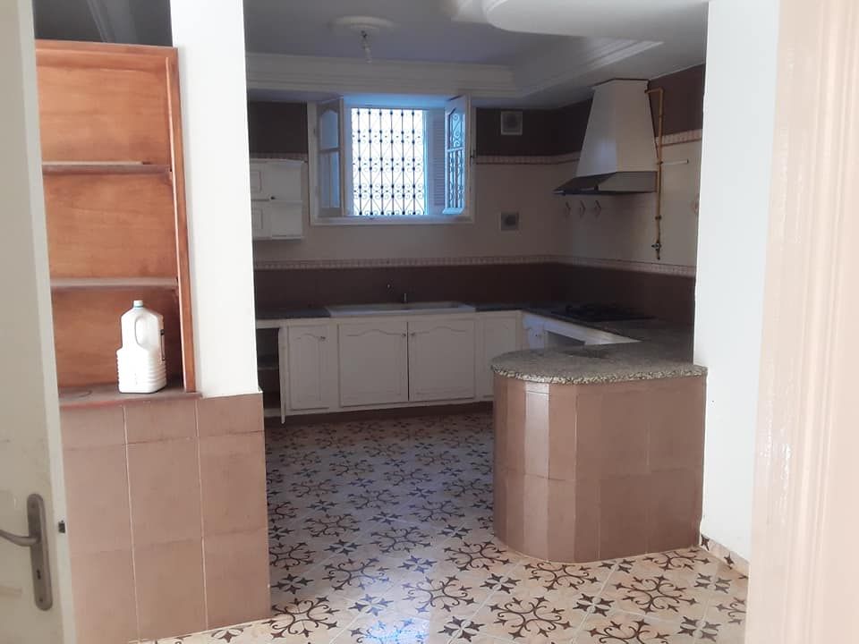 A louer à l’année une spacieuse maison sans meubles de type s+3, avec chauffage central et garage pour deux voitures, située à Hammamet « ribat », proche du théâtre, endroit très calme entouré des villas, de 10 minutes à pied de la route principale.