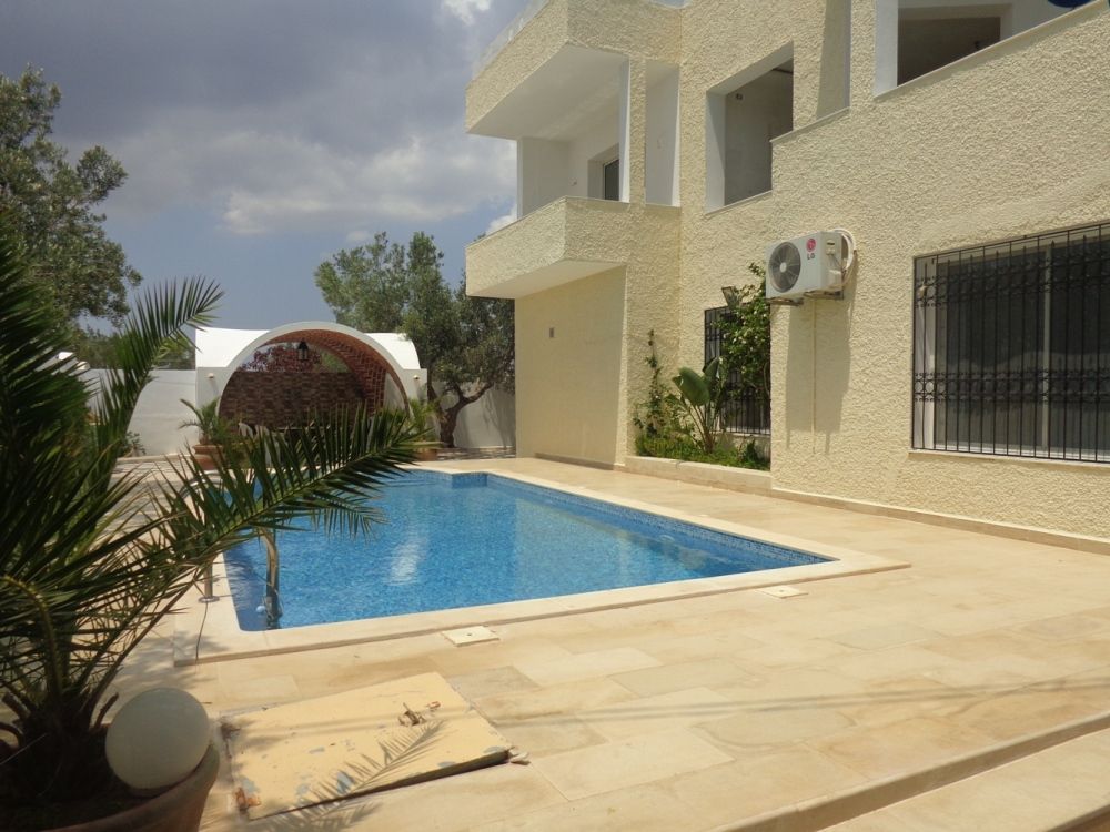 Notre agence GHALLEB met a votre disposition une magnifique villa spacieuse avec piscine entourée d’un grand jardin située dans une zone très calme et sécurisée à la campagne de Hammamet Nord.