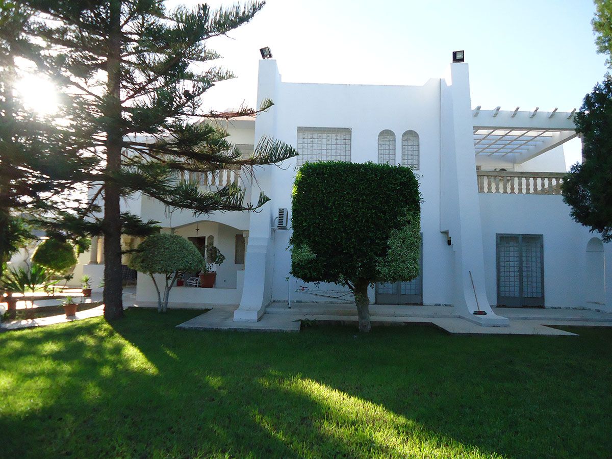 a vendre a kantaoui une très grande villa style américain d'une superficie 1381 m2 600 m2 couvert composé d'un rez de chaussée suit par une très grande salon, salle à manger,grand cuisine équipée,salle de bain chambre bonne,cuisine service, salle d'eau. l'étage se compose de 2 blocs un pour parent et un pour enfant chacun se compose de 3 chambres à coucher et une salle de bain.la villa est entourée par une très grande jardin et 2 grands garages.