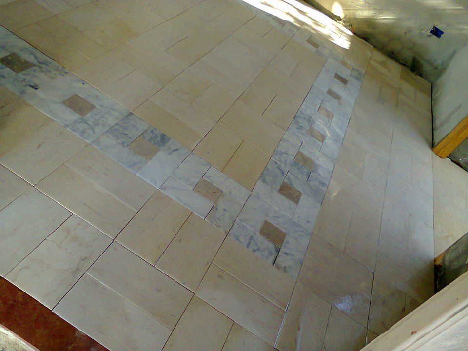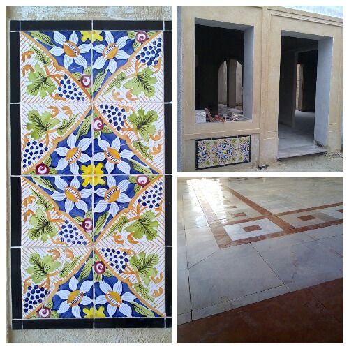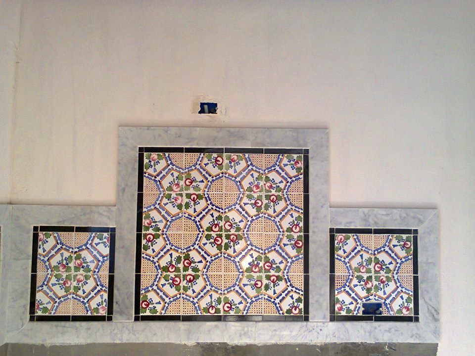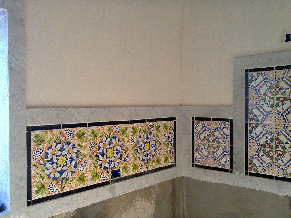 tres beau revêtement en calpinage de marbre blanc et kadhel faience artisanale.