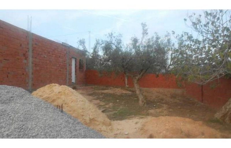 AV un terrain avec un garage inachevé proche de Hammamet dans une zone calme sur une route godronnée proche de la route principale.