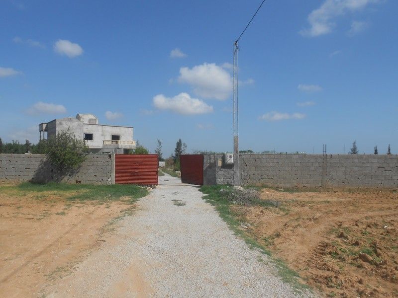 Av un terrain de 8800 m² dispose de l’eau et de l’électricité à 15 min de Yasmine Hammamet prés d'une épicerie, une mosquée, un café, une école.