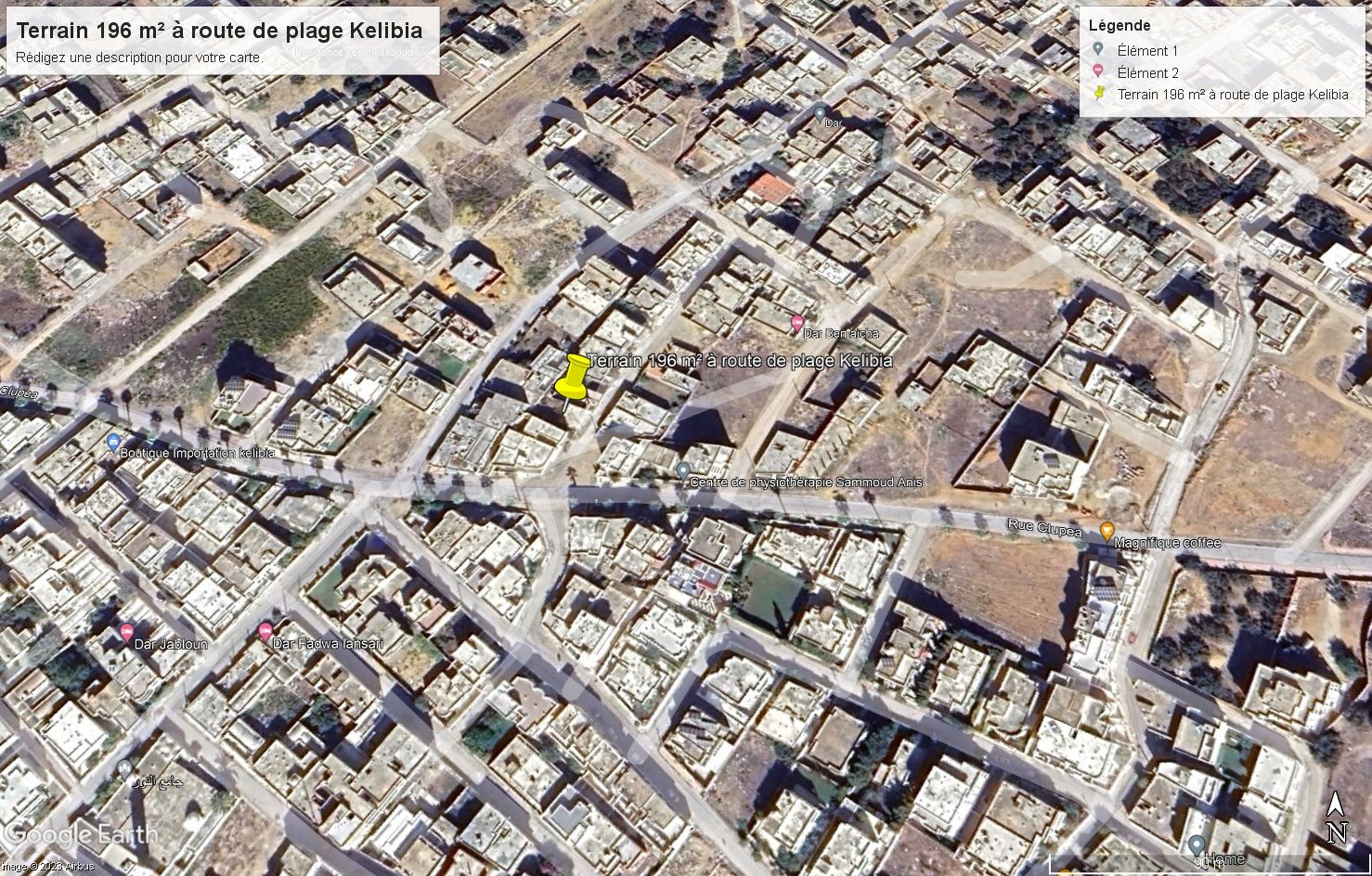 A vendre Terrain d’habitation à Kelibia situé à 3 minutes en voiture de plage el mansourah et en 2ème position de route de plage Clupea de superficie 196 m² avec une façade de 11mètres sur une rue 7 mètres.