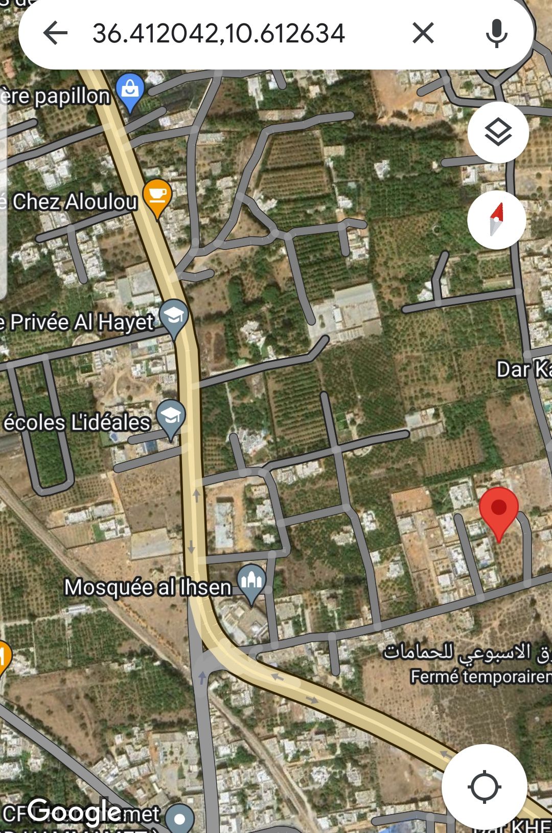 A vendre à Hammamet près de la mosquée el ihssen un très beau terrain d'une superficie de 418 m² dans un quartier calme avec un bon voisinage.