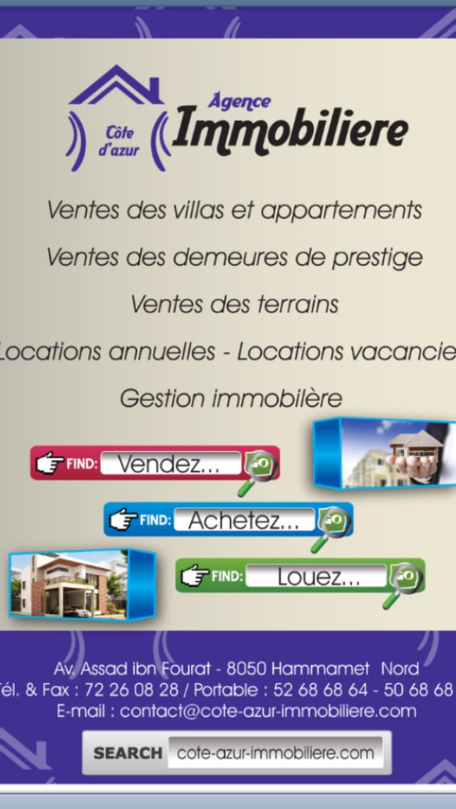Pour toutes autres informations, contactez-nous sur +216 72 260 828 / +216 50 68 68 68 / +216 52 68 68 64 / +216 53 58 68 64