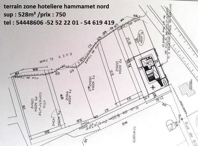 A vendre terrain de 528 m2 sis à hammamet nord devant l'hôtel aziza, derrière arabesque et derrière l'hôtel dalia. Titre foncier individuel