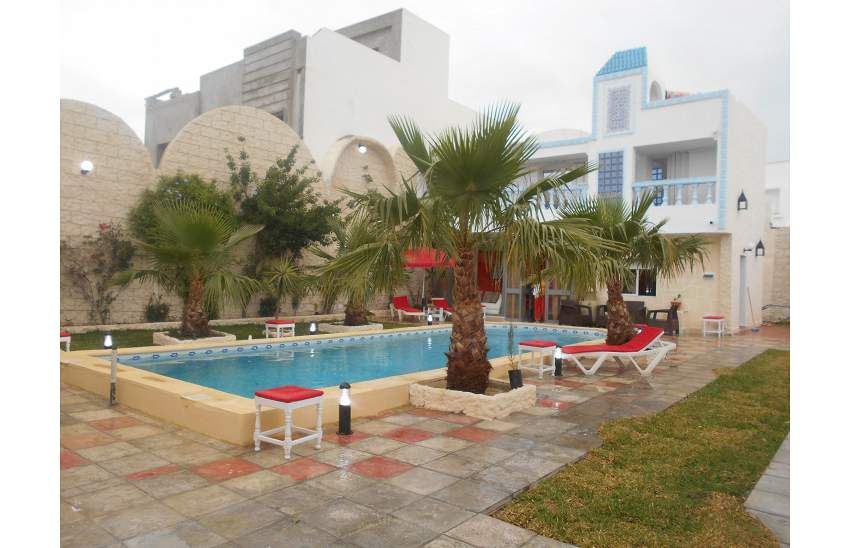 L’agence CLICK DAR met en vente une belle villa sur deux niveaux avec piscine. La villa se trouve dans une zone résidentielle pas loin de l’hôtel Miramar. La villa surgit sur un terrain de 300 m² dont 180 m² couverts. La piscine fait 12 mètres sur 6. Au rez-de-chaussée, un salon-kitchenette, un coin repas, une salle d’eau et une terrasse arrière avec un puits. A l’étage deux chambres suites, une avec douche italienne et l’autre avec jacuzzi.