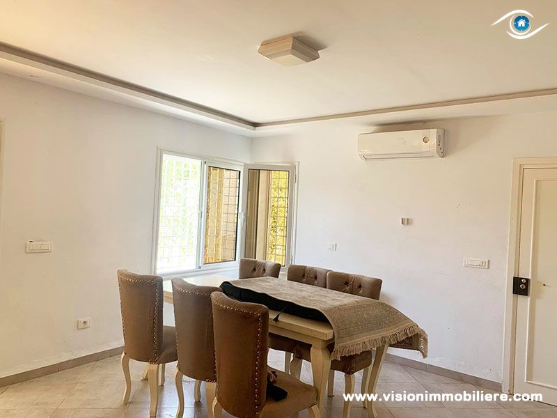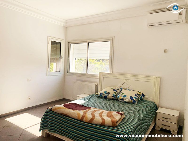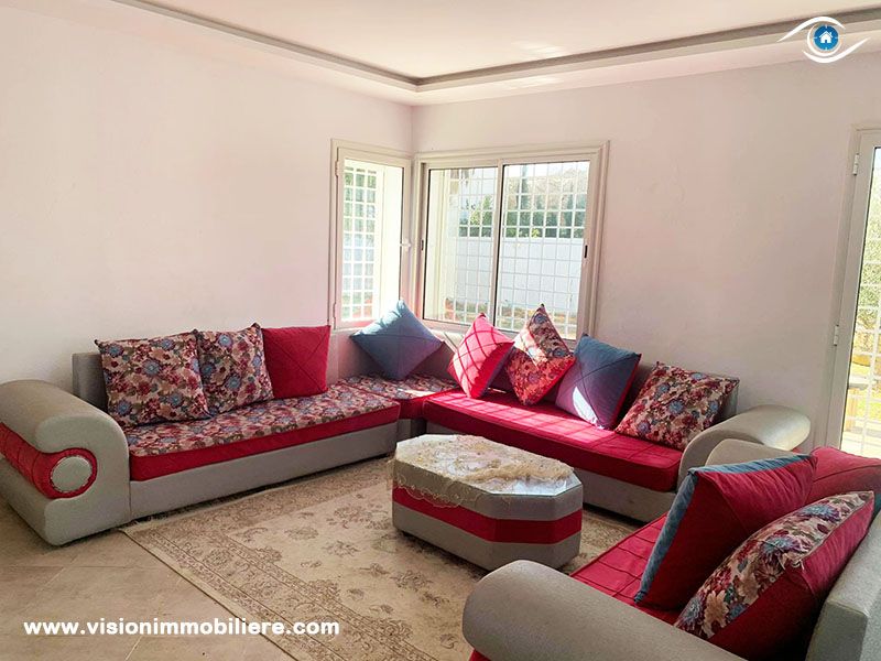A louer , Pour les Vacances , Chez Vision Immobiliére Tunisie , Cette villa érigée sur deux niveaux se situe dans un endroit calme à Hammamet centre . L’entrée ouvre sur un jardin enveloppant paysagé et orné d’une piscine . Le rez-de-chaussée abrite un salon lumineux grace à ces Fenetres qui s'ouvre sur le jardin , une cuisine entièrement bien équipée . Une salle d'eau pour les invités. À l’étage, une suite parentale est munie d’un dressing, d’une salle de bain et d'une Terrasse . Trois chambres à coucher se partagent une salle de bain commune. Un garage qui peut contenir deux voitures .