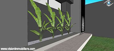 A Vendre , Chez vision Immobiliére Tunisie Hammamet . Cette Villa qui se situe à Hammamet nord en cours de construction . L'entrée Principale donne sur un vaste jardin gazonné . c'est une villa qui se compose d'un salon . une cuisine bien équipée et une salle d'eau . un couloir nous méne à la partie nuit qui posséde deux chambres à coucher chacune complétée par un dressing . et une suite parentale avec dressing . un abri de voiture .
