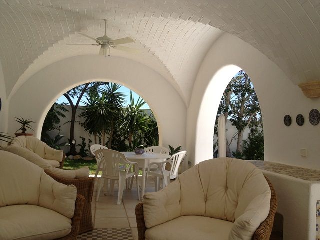 La villa comprend un abris voiture, un jardin arboré, fleuri et gazonné entourant la villa. Elle compte également une grande piscine et elle possède une vue imprenable sur le Golf d'Hammamet.