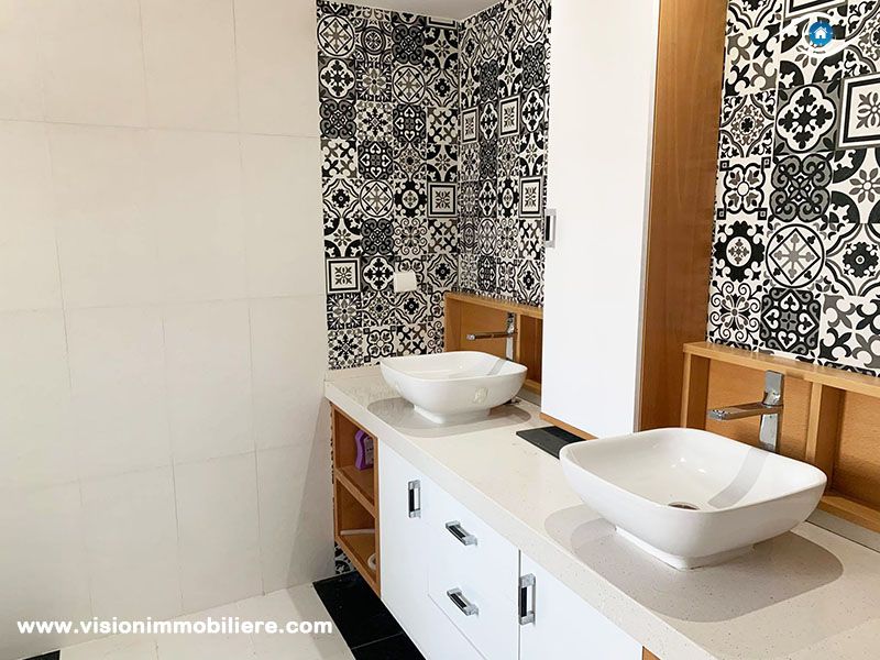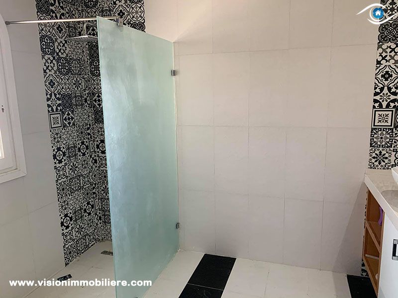 A vendre , Chez Vision Immobiliére Tunisie , Cette villa qui se situe dans un endroit calme à Yassmine hammamet . L’entrée abrite un salon lumineux et une salle à manger , une cuisine entièrement bien équipée : four électrique, hotte aspirante, plaque chauffante. La partie jour est complétée par deux chambres à coucher et une salle d’eau pour les invités. À l’étage, deux chambres à coucher et d’une salle de bain . Deux chambres à coucher se partagent une salle de bain commune.