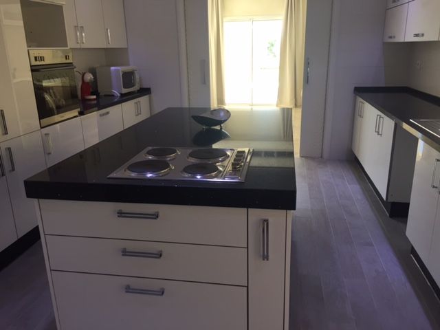 La villa comporte, un grand salon qui donne sur le magnifique jardin gazonnée et la mer, une grande cuisine moderne te bien équipée, une petite cuisine, une salle d'eau pour les invités, une suite parentale, deux chambres à coucher et un balcon qui donne sur la mer.
