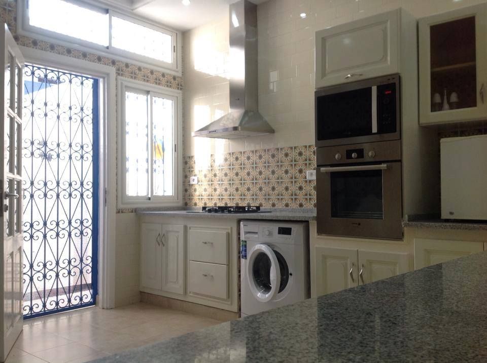 nous louons, à sidi bousaïd, dans un quartier résidentiel très calme, sécurisé, d excellent voisinage, et à proximité de tout commerce, une villa de standing, non meublée, en impeccable état, bâtie sur 3 niveaux.