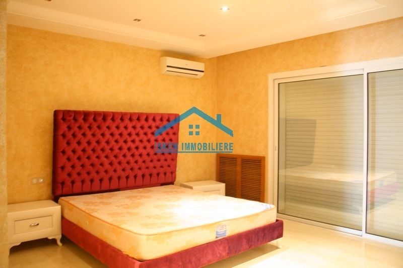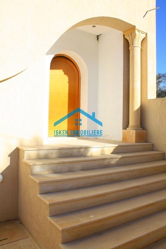 A vendre une villa très haut standing avec piscine, style américain coté hôtel Hammamet Garden la ville est composée d’un grand salon avec Terrace donnent sur la piscine une cuisine moderne et équipée, une chambre a coucher avec salle d’eau douche, au premier étage ; 3 chambres suites avec dressings .