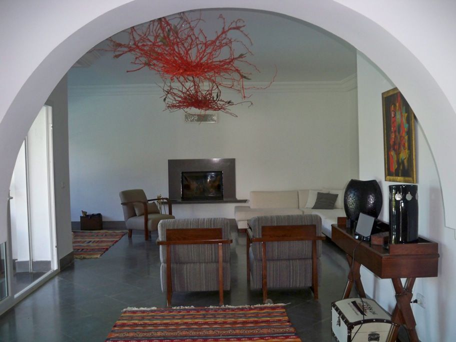 Dans un style arabe avec voûtes croisées et s’élevant sur deux niveaux. Le rez-de-chaussée compte une cuisine aménagée et équipée, une salle d’eau et un salon avec terrasse donnant sur le jardin gazonné et la piscine. A l’étage il y a une suite parentale et de deux chambres à coucher avec leur propre salle d’eau. La villa dispose du chauffage central et de climatiseurs ainsi qu’une cheminée autour de laquelle il se sera agréable de se réunir durant les soirées hivernales. Prix : 2800 DT/mois