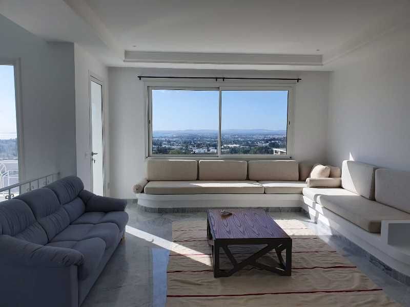A louer à l'année chez l'agence TPS Immobilière, une villa de luxe avec une magnifique vue sur mer située sur les hauteurs d’Hammamet.