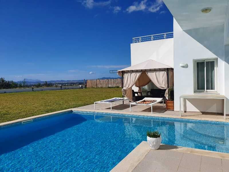 A louer à l'année chez l'agence TPS Immobilière, une villa de luxe avec une magnifique vue sur mer située sur les hauteurs d’Hammamet.