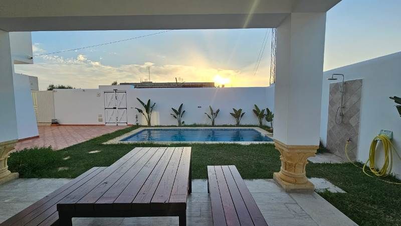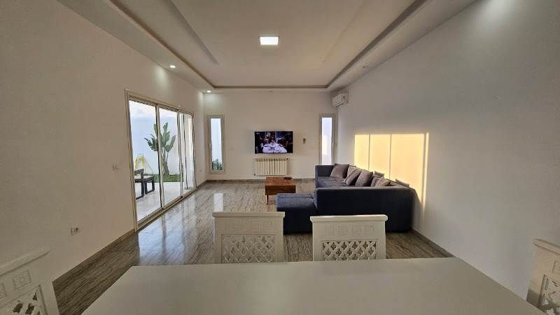 A louer à l’année chez l'agence TPS Immobilière Hammamet, une belle villa meublée avec piscine, bien située à Hammamet dans un quartier résidentiel de la zone chraf.
