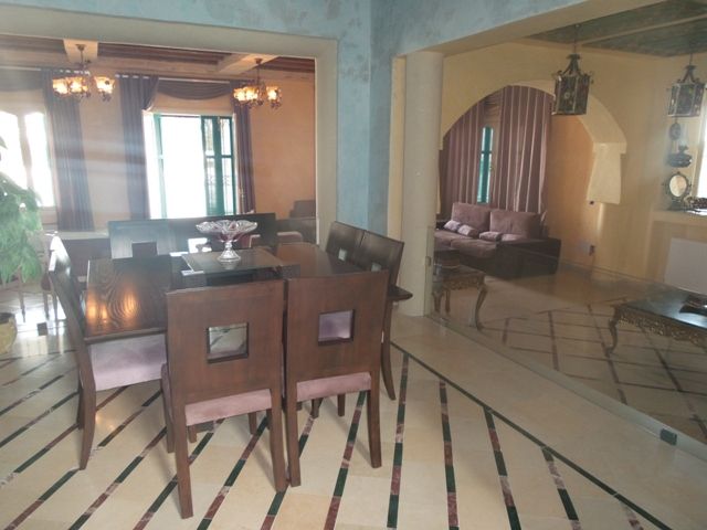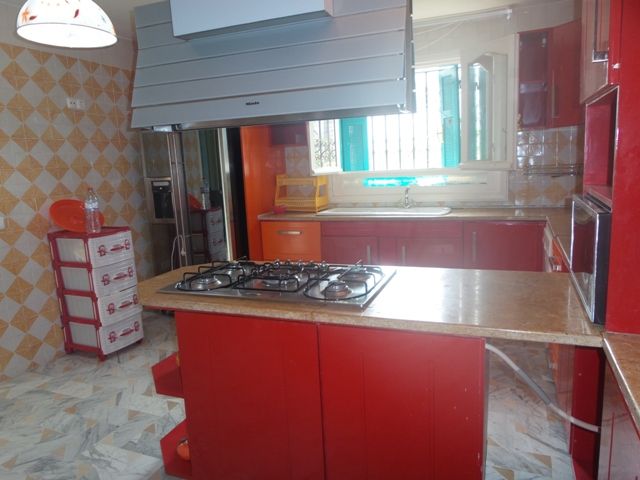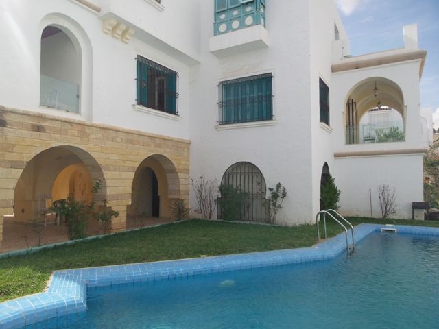 A louer pour les vacances chez l'agence TPS immobiliere Hammamet, une belle villa de style mauresque, située à Yasmine Hammamet. La villa est érigée sur deux niveaux, elle comporte au rez de chaussé deux salons, un séjour, une salle à manger, une salle d'eau pour les invités et une belle cuisine moderne. L'étage, comporte quatre suites parentale et chaque suite avec sa propre salle de bain et dressing). A l'extérieur, une belle terrasse, un jardin gazonné, une piscine et un abri de voitures. Toute la villa est équipée de chauffage central et de climatiseurs. Tarif: 6000 DT/semaine.
