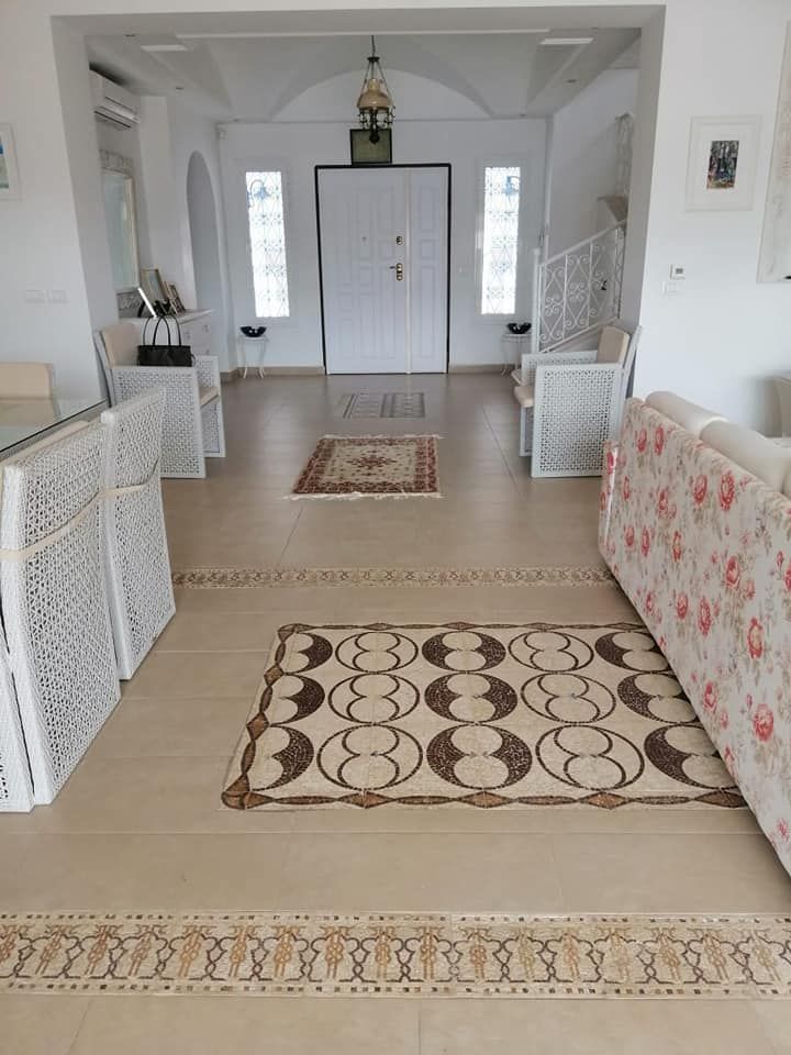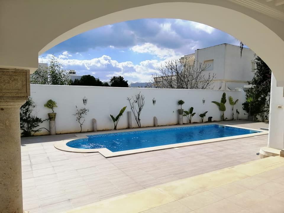A vendre à Hammamet sud à quelques mètres de l'hôtel Mirage et d'une belle plage, une villa avec piscine jardin garni d'arbres fruitiers et de belles terrasses. La superficie couverte fait 370 m2 repartis entre un RDC et un 1er étage ,érigée au milieu d'un terrain de 702 m2 ,La villa offre un spacieux salon salle à manger ouvrant sur une belle terrasse et sur la piscine,une vaste suite avec dressings et SDB et une grande fenêtre sur piscine ,une salle d'eau, une cuisine spacieuse et bien équipée donnant sur une chambre pour le personnel avec sa douche et un garde mangé. Le premier étage se compose de trois belles suites avec de spacieuses terrasses