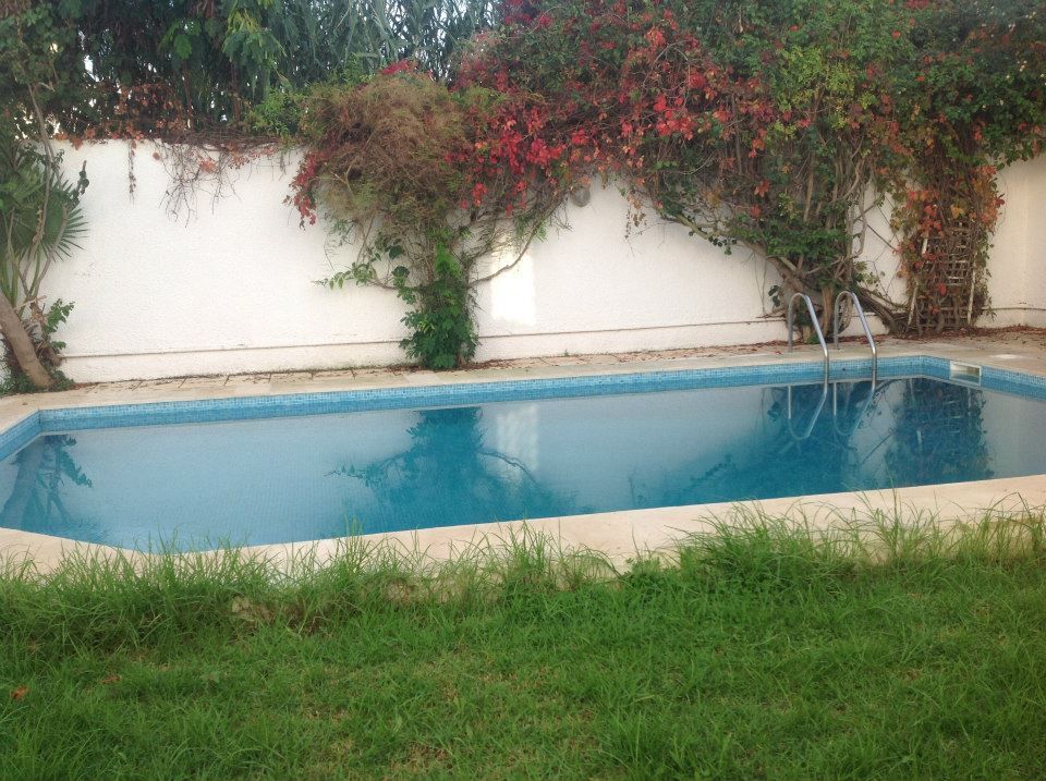A l'entr�e au rez de chauss�e, se pose un grand espace �clatant, qui peut �tre exploit� en tant que salon, salle � manger et s�jour avec une porte vitr�e donnant acc�s � la piscine, une cuisine enti�rement �quip�e avec terrasse et une salle d'eau...
