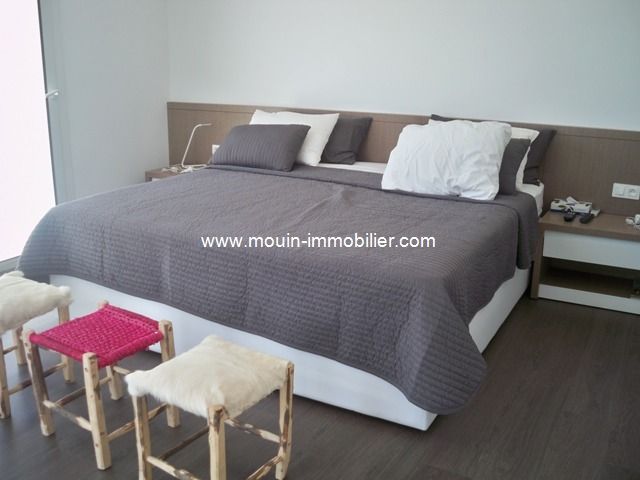 A louer à l’année une somptueuse demeure au style arabe contemporain bien située au sein d'un cadre agréable et calme au centre d'un verger à Hammamet. Elle est composée au rez de-chaussé d’un salon donnant sur des belles terrasses, un coin salle à manger, d’une cuisine moderne bien équipée, deux chambres à coucher et deux salles d’eau. Quant à l’étage une grande suite parentale avec un dressing et une belle salle de bain. A l’extérieur : un bungalow comprenant un salon, une chambre et une salle de bain. Une cuisine externe et un logement pour le gardien. La demeure est équipée du chauffage central et de la climatisation et elle dispose d’une piscine et un garage, le tout dans un cadre verdoyant.