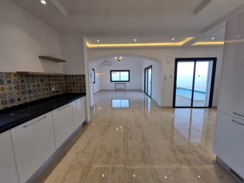 A vendre chez l’agence TPS Immobilière Hammamet, une magnifique villa toute neuve avec piscine, bien située à la zone El Monchar et à 6 km de Yasmine Hammamet.
