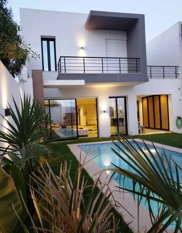 A vendre chez l’agence SMART OWNER immobilière Hammamet, une superbe villa nouvellement construite avec des matériaux raffinés, bois noble, sanitaire de qualité, située à Hammamet et pas loin de la zone Miramar,