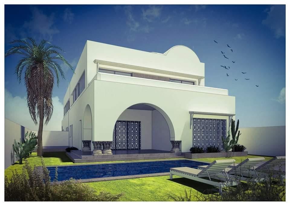 A vendre chez l’agence SMART OWNER immobilière Cette villa au style moderne se situe à 5 minutes à Hammamet-Sud, elle est nouvellement construite (encours de finition).