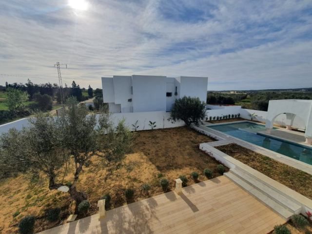A vendre chez l'agence TPS Immobilière Hammamet, une superbe villa de très haut standing nouvellement construite avec des matériaux raffinés, bois noble, sanitaire de qualité, située à 8 km d'Hammamet et pas loin de la zone sidi hamamed, un mélange entre le style contemporain et traditionnel.